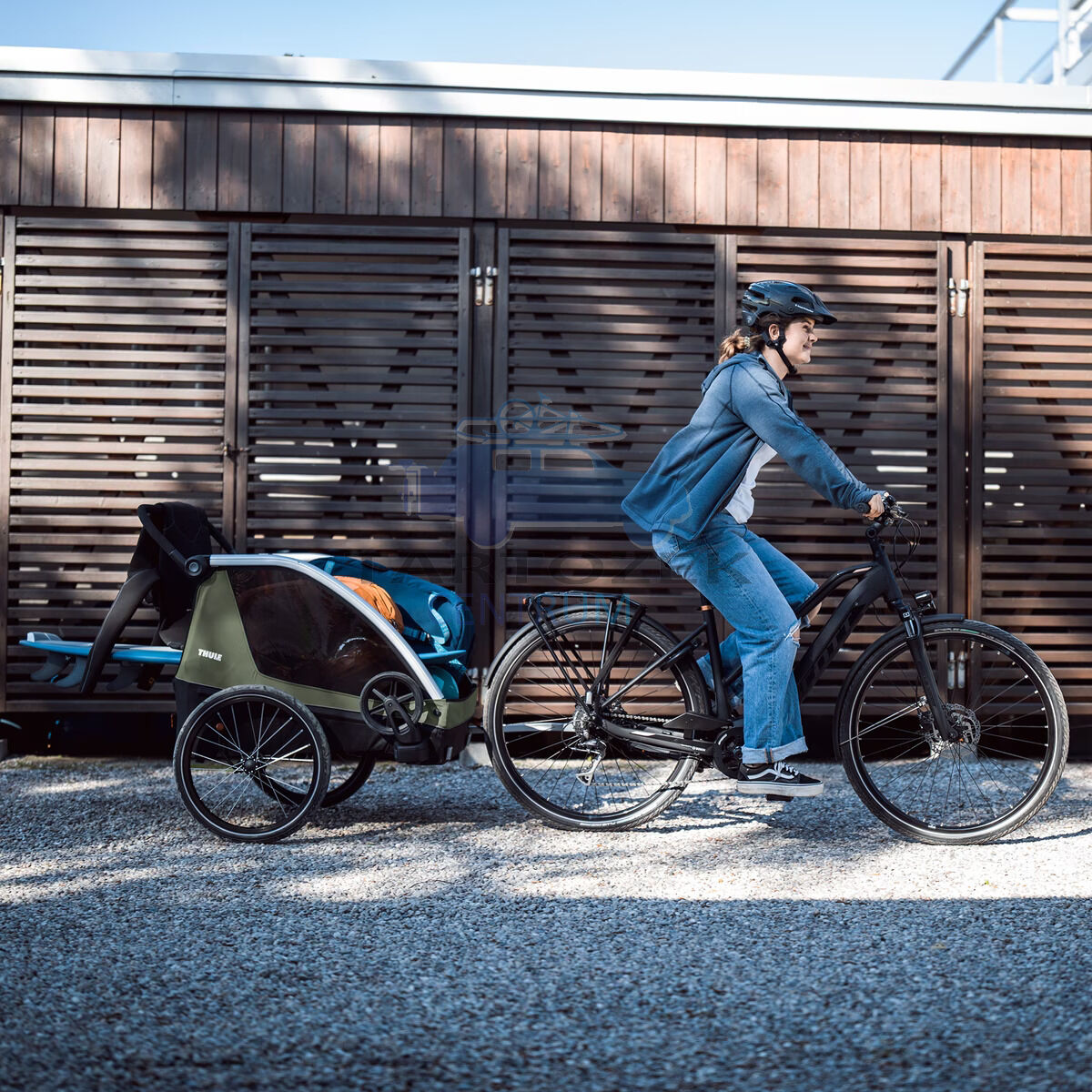 A Thule Courier egy sokoldalú kerékpárutánfutó mindenféle család számára. Ez a tartós hordozó tökéletes hosszú családi utakra vagy rövid városi utakra a tágas vezetőfülkének köszönhetően, két gyermek számára. Nagyszerű ingázáshoz és a gyerekek iskolába szállításához – érkezéskor pedig könnyen átalakítható babakocsivá kompakt kerekeivel a zsúfolt helyeken való manőverezéshez, valamint teljesen állítható kormánnyal a szülők számára. Ez a kényelmes kerékpárszállító akár teherutánfutóvá is átalakítható, és még sok másra is alkalmas.